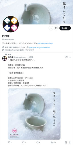 - 2026/01/29 佐々木達郎が謳う大酒器展 The Great exhibition of items for SAKE "恋する酒呑童子" update