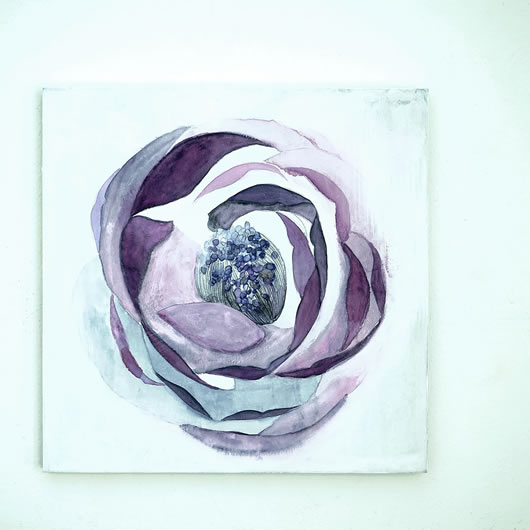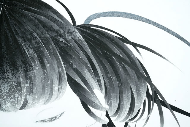 By drawing countless fine lines, one by one, with a mensō brush, flowers rich with vitality bloom across the surface of the painting.